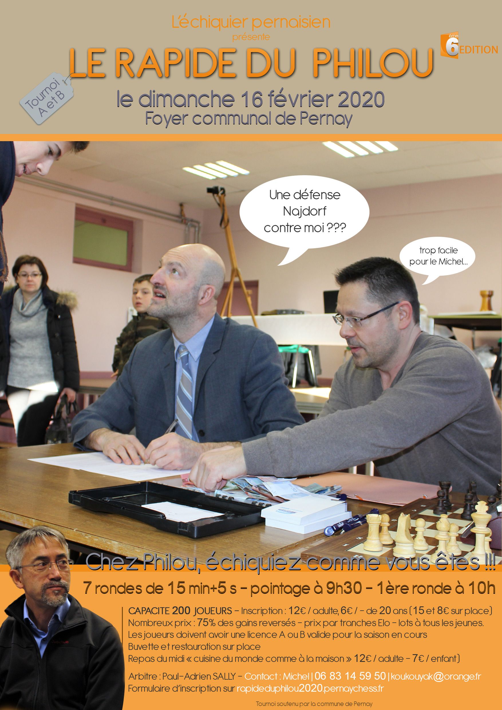 Surfant sur son succès depuis sa 1ère édition, le club d'échecs de Pernay organise son 6ème Open du Philou, toujours en hommage à Philippe Vigie, dans la salle des fêtes de la commune.